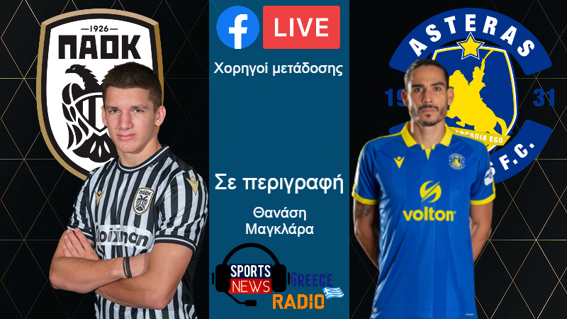 ΠΑΟΚ - Αστέρας Τρίπολης LIVE Streaming & audio ( 17:15 )