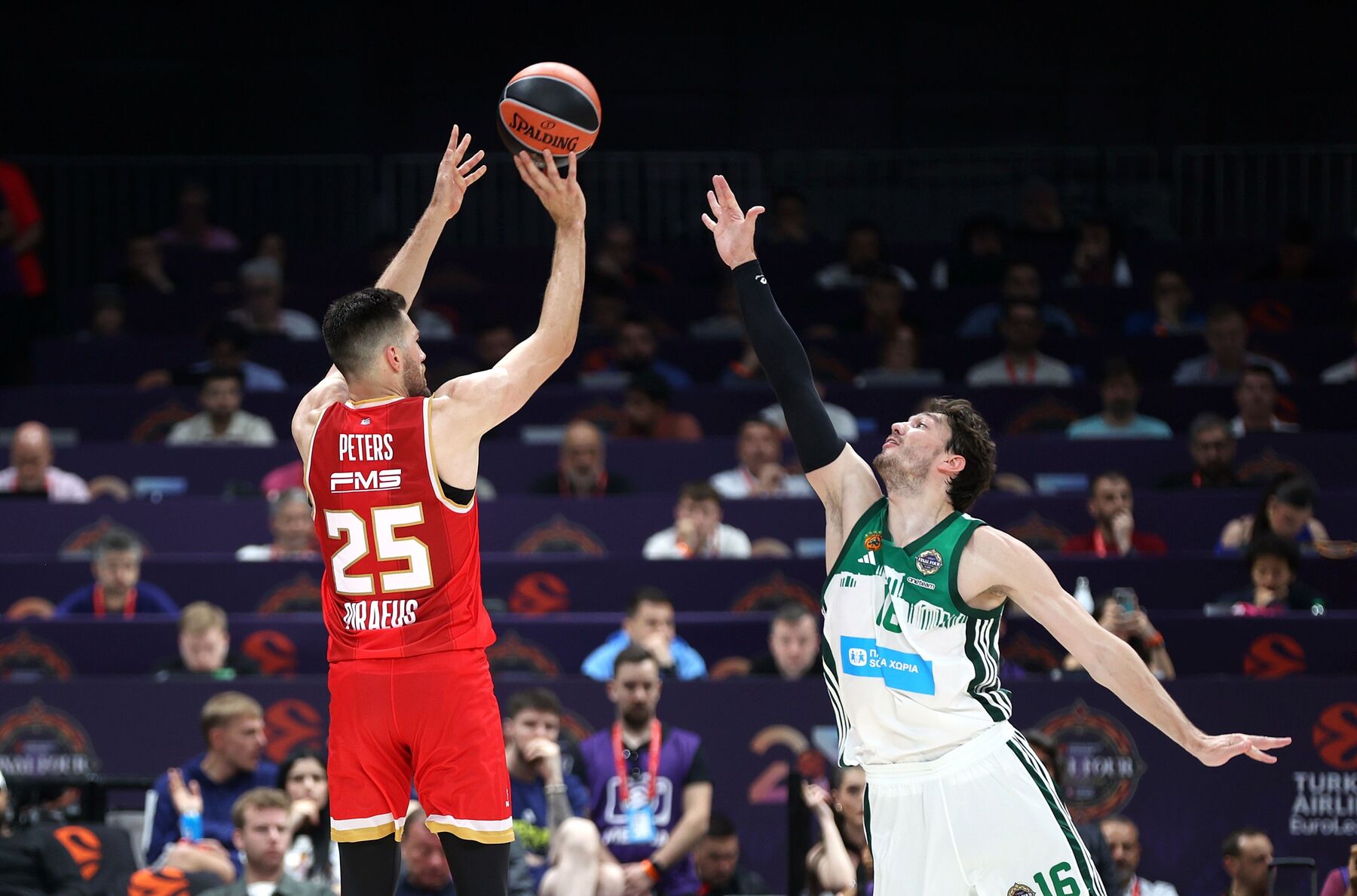 Πίτερς και Βεζένκοφ είχαν αθροιστικά 11/13 τρίποντα, με τον Ολυμπιακό να φτάνει στο +14 (86-72) στο ξεκίνημα της τέταρτης περιόδου (33'), πριν ο Γιουρτσεβέν σκοράρει και πάρει και το φάουλ για το 86-74. Οι Πράσινοι μείωσαν μέχρι και τους 7 (93-86, 38') μετά από 4 συνεχόμενες βολές του Λεσόρ (12π.) και καλάθι του Καλαϊτζάκη (4π.), με τον Ολυμπιακό να κρατάει τα ηνία μέχρι το φινάλε και να βγαίνει νικητής από το ντέρμπι της τρίτης θέσης!